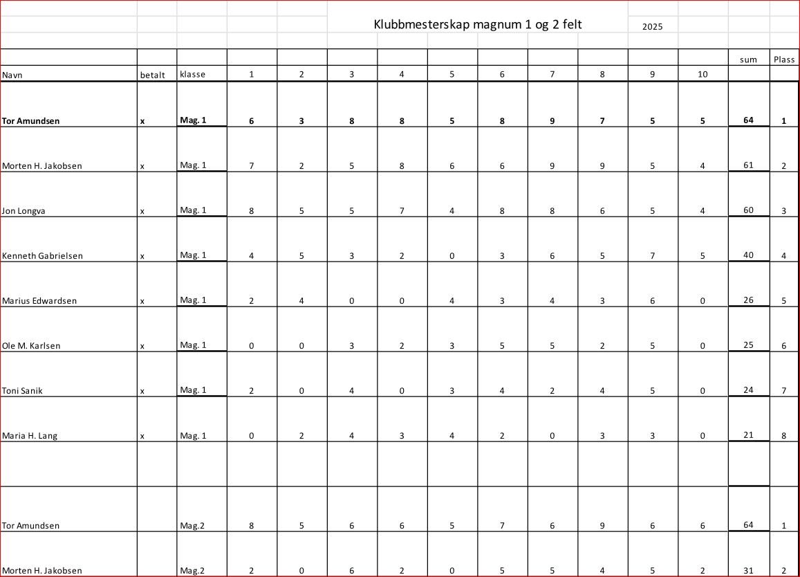 Klubbmesterskap magnum 1 og 2 felt 2025