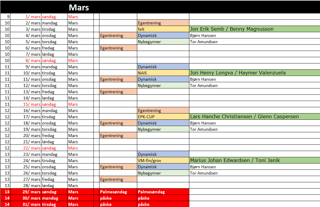 Last ned filen nedenfor for å se planen for hele året. (Excel og PDF versjon)
